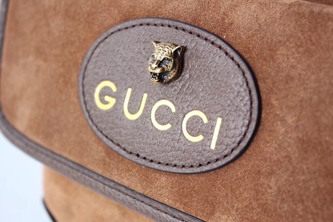 Oval Gucci leather tag with feline head