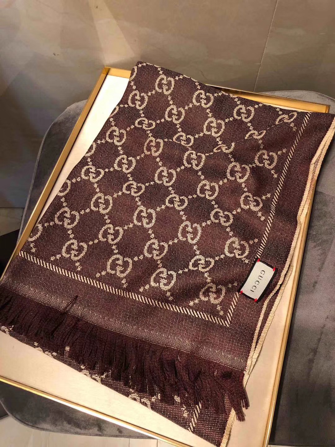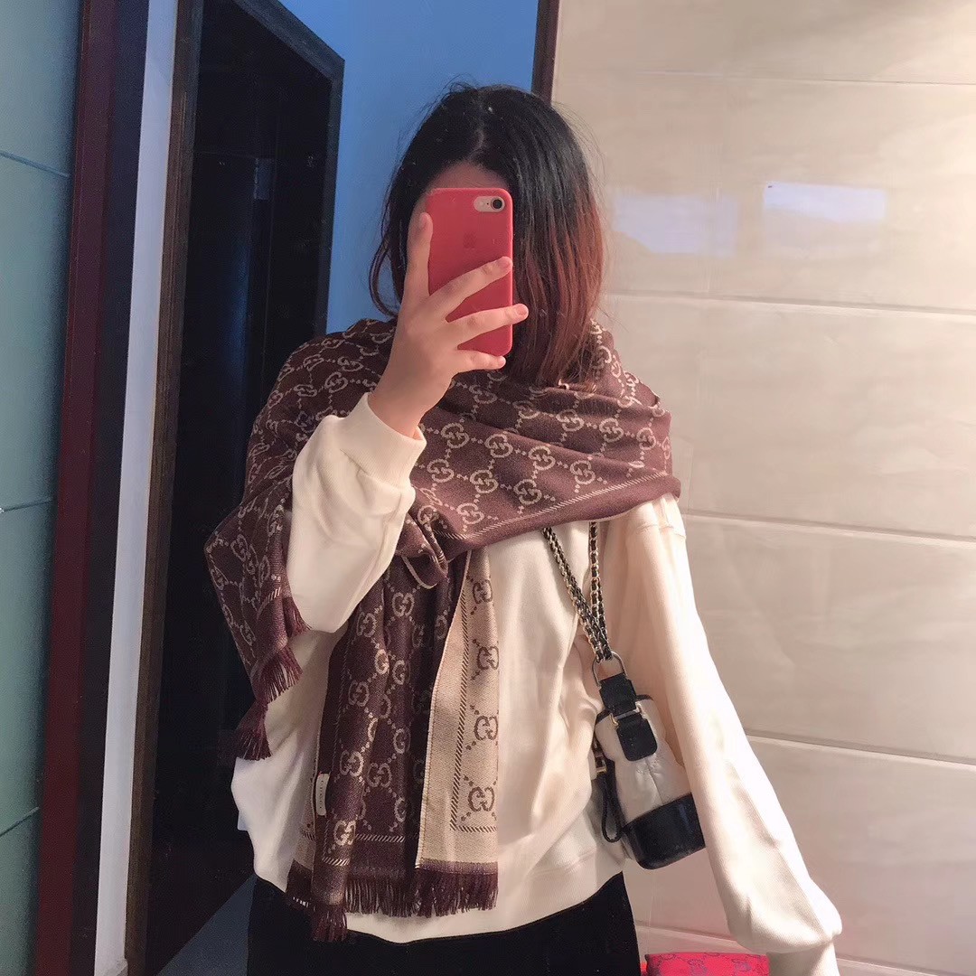 Gucci OBLIQUE STOLE IN WOOL AND CASHMERE GG55620 brown HY9781rf34
