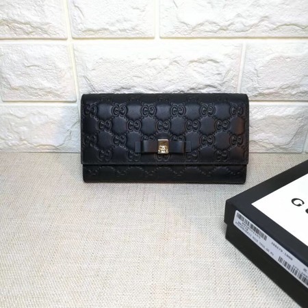 Gucci Bow Gucci Signature Continental Wallet 388679 Black HY20462vX33
