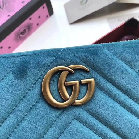 Knockoff Gucci GG Marmont Velvet Zip Around Wallet 443123 SkyBlue HY26059vf92
